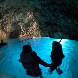 生憎の曇りでしたが、洞窟もとても青く、魚もたくさんで本当に楽しかったです!