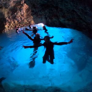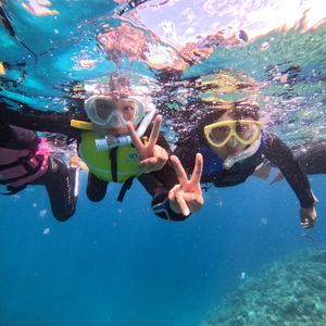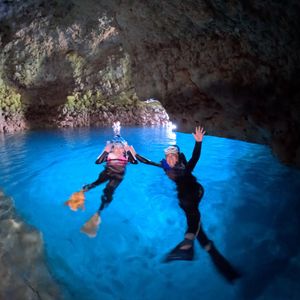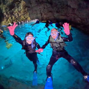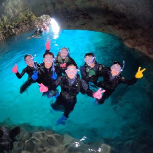中学生娘二人と女子旅で参加しました。初心者にも優しく教えて頂き、楽しく体験できました。青い洞窟は圧巻の綺麗さで感動です。魚餌やりも沢山行えました。写真も多く撮ってもらい良い思い出になりました