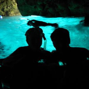 青の洞窟は本当に青く輝いて見えてとても綺麗でした!そして、魚の餌やりでは様々な魚が手の届く距離で見れ、魚の目線で世界を見ているようで海の中だということを忘れるほどでした!