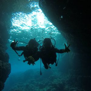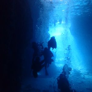 沖縄を代表する観光スポット、青の洞窟を体験ダイビングで堪能するアクティビティのご紹介です。水中で呼吸ができる感動、海の中で味わう浮遊感や魚との距離はダイビングならではの醍醐味!青く輝く洞窟の光景と、ダイビングの楽しさを一度に体験できるおすすめです。青の洞窟は口コミや観光地ランキングでも常に上位の人気スポットです。洞窟というと深いイメージがありますが、ここの深さは水深約6メートルほどです。体験ダイビングは資格も必要なく、泳ぎに自信がない方もインストラクターと一緒に潜るので心配いりません。一人参加も大歓迎。みんなでいっしょに青の洞窟を楽しみましょう。