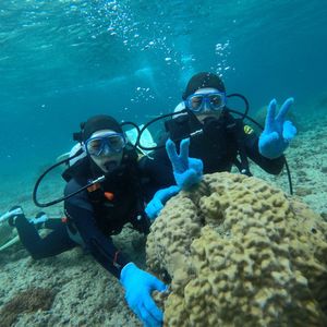 初めてのダイビングだったので緊張しましたが、2人に1人インストラクターの方が付いてくださり手を取って泳げたので安心して楽しめました。