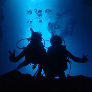 沖縄を代表する観光スポット、青の洞窟を体験ダイビングで堪能するアクティビティのご紹介です。水中で呼吸ができる感動、海の中で味わう浮遊感や魚との距離はダイビングならではの醍醐味!青く輝く洞窟の光景と、ダイビングの楽しさを一度に体験できるおすすめです。青の洞窟は口コミや観光地ランキングでも常に上位の人気スポットです。洞窟というと深いイメージがありますが、ここの深さは水深約6メートルほどです。体験ダイビングは資格も必要なく、泳ぎに自信がない方もインストラクターと一緒に潜るので心配いりません。一人参加も大歓迎。みんなでいっしょに青の洞窟を楽しみましょう。