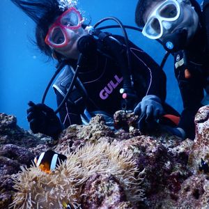 友達と2人で初めて体験ダイビングをしました!電話での予約の段階からとても親切なお店だったのでむるぬーしさんに決めました!私たちのほかに3名の男性が一緒にダイビングをする感じだったんですが、説明等だけ一緒にして、ダイビングする時は別々で、私たちに1人のインストラクター、男性側に2人のインストラクターがつく形でした!インストラクターの方はどの方もイケメンでとっても優しく面白い方だったのですごく楽しめました!また、行きたいって思えるようようなお店なので、友達にも紹介したいとおもいました!