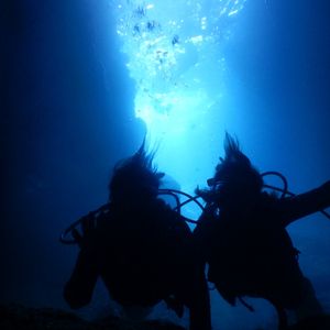 20代の男女ふたりで参加しました。強風の影響でボートエントリーのダイビングになりましたが、とっても素晴らしい景色が見られました。ガイドさんに案内され洞窟内に入ると暗く、「どこが青いんだろう」と訝しみながら背後を振り返ってみると、そこには神秘的な光景が広がっていました。青の洞窟は、想像以上に青が映えるスポットでした。その後の餌付けタイムでは、カラフルな熱帯魚たちが自分たちの周りに集まって来て、目の前がプチ水族館のようでした。ガイドさんが撮った写真はさすがプロ!バッチリでした。