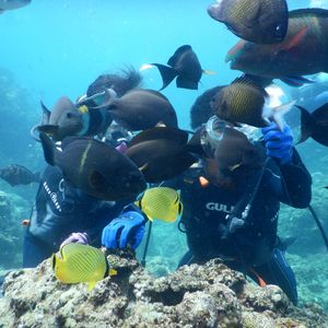 10歳の女の子2人連れて初めてのダイビン!インストラクターのミヤッチが緊張をほぐすように子供たちに面白おかしく接してくれて場が和みました。説明を受けた後、さぁ出発!長い階段を降りて海に向かい子供達は少し緊張の中初ダイビング!天候の良さシーズン的な事もあってすごい人でした。終始手を握ってもらっていて不安なく楽しめました。何と言っても10歳の女の子が問題なく楽しめて初ダイビング出来たことがビックリで感動でした!それもインストラクターの方のおかげです。終始声を掛けて頂き楽しめさせてもらいました。子供達も明日もやりたいと言ってました(笑)ミヤッチに教えてもらったカレー屋さんと水納島行って来ました!最高でした!むるぬーしさんホントありがとうざいました!最高の経験でした!