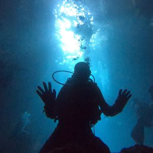 沖縄を代表する観光スポット、青の洞窟を体験ダイビングで堪能するアクティビティのご紹介です。水中で呼吸ができる感動、海の中で味わう浮遊感や魚との距離はダイビングならではの醍醐味!青く輝く洞窟の光景と、ダイビングの楽しさを一度に体験できるおすすめです。青の洞窟は口コミや観光地ランキングでも常に上位の人気スポットです。洞窟というと深いイメージがありますが、ここの深さは水深約6メートルほどです。体験ダイビングは資格も必要なく、泳ぎに自信がない方もインストラクターと一緒に潜るので心配いりません。一人参加も大歓迎。みんなでいっしょに青の洞窟を楽しみましょう。
