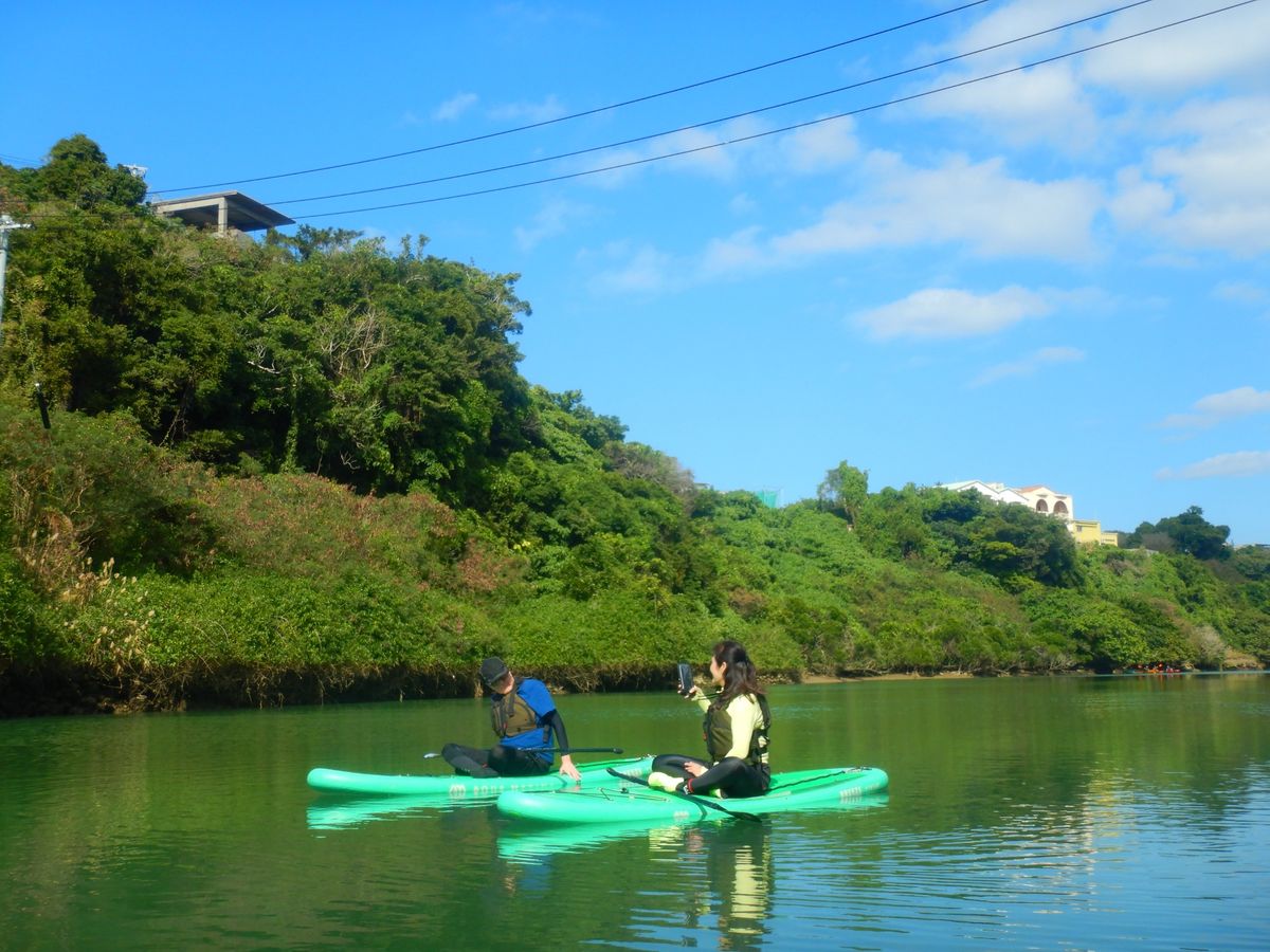 友人と4人で参加しました。半数が初めてのSUPでしたが、全員立つことができました!嘉手納の緑と自然に癒された幸せな時間でした。