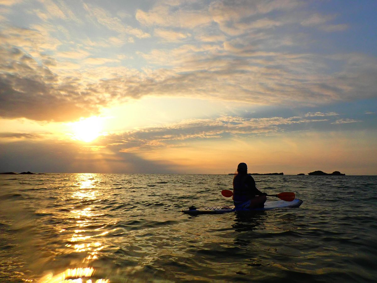 綺麗な海でひたすらにプカプカしたいと2年ほど思い続けて、夕陽を見ながらという最高の体験をできました。海に落ちてしまったのもいい経験です。