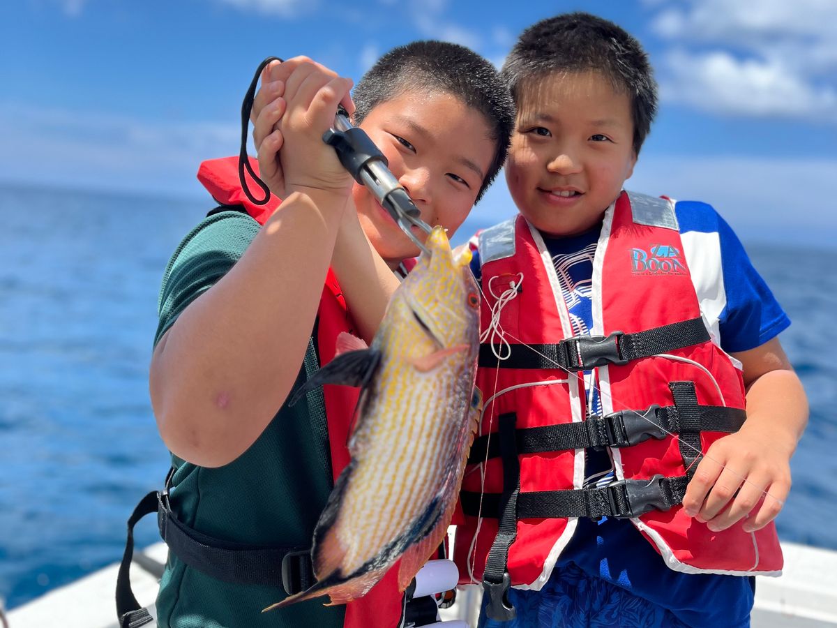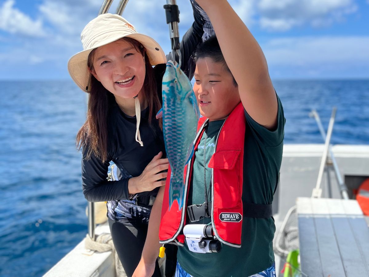 今回カヤックは、初めてでしたが、乗りやすくて操作性が程よく難しく、それがとっても楽しくて沢山笑いました!途中スコールもありましたが、アトラクションのようで、ワクワクして楽しかったです。自分達では撮れない、写真も沢山撮っていただき嬉しかったです!海釣りのほうは、家族4名で10匹くらい釣りました。小さいサイズはリリースしましたが、30cm程のサイズも釣り、子供達も大興奮でした。ツアーの方が優しく丁寧に教えてくださり、子ども達にはオキアミを付けてくださったりと本当に有り難かったです!想像以上に美味しそうな魚が釣れた為、捌いてお料理して下さるお店を紹介いただきました。持ち込みの魚は刺身と唐揚げと煮付けとバター焼きに、これまた驚きの美味しさと、自分で釣った魚という思いから、みんな夢中でむさぼり食べました!!これこそ、自給自足の食育実体験で、感動しました。大変お世話になりました。本当にありがとうございました。