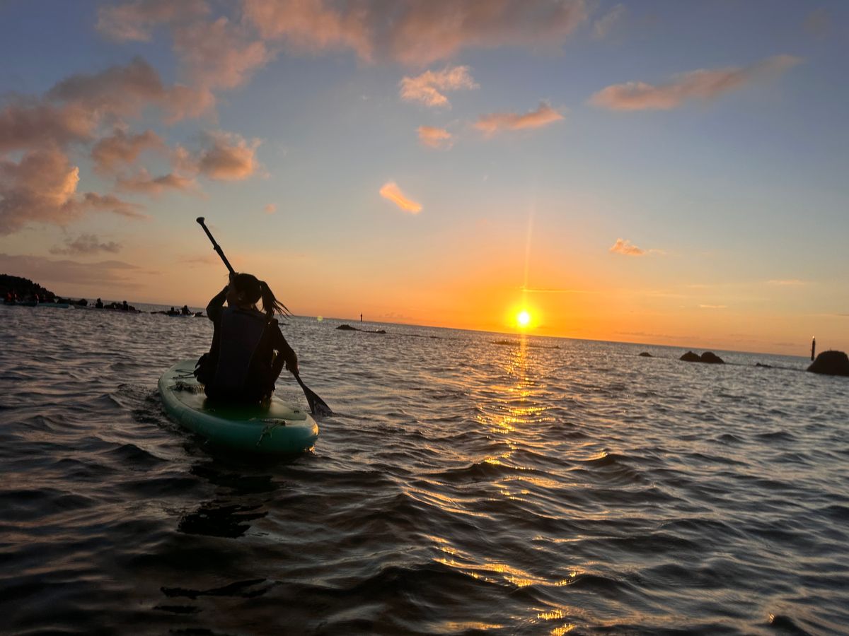 初めてのSUPではじめはドキドキでしたが、インストラクターのエリカさんに優しく教えてもらいながら、楽しい時間を過ごせました!海とサンセット、最高でした!写真もたくさん、きれいに撮っていただいて素敵な思い出になりました。また次に沖縄に行く際は参加させてもらいたいです!