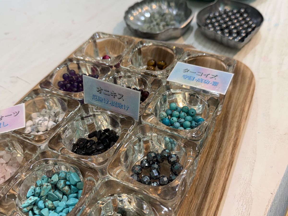 沖縄旅行の思い出に、テラヘルツの石でブレスレットを作りました。お店は賑やかな音楽が流れていました。テラヘルツの石についての効果は元々知っていて欲しいと思っていたので嬉しかったです。実際に身につけてみると、不思議と手元がじんわり温かく感じました。シンプルなのに存在感があり、普段使いにもぴったり。沖縄の良いエネルギーと一緒に、特別なブレスレットを持ち帰ることができてよかったです。