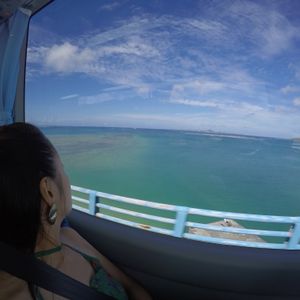 沖縄滞在の2日目に参加しました。11月末だというのに、気温は27度、天気は快晴、まるで夏のような1日でした。美ら海水族館では、滞在時間が長めの150分なので、ジンベイザメ、マンタ、ウミガメ、イルカのショーなど、ゆっくり見ることができ、さらにショッピングをする余裕もありました。1日の中で、嘉手納基地や万座毛、アメリカンビレッジも訪れることができ、水族館の入場料込なので、とてもお得なツアーだと思います。バス車内では、各観光地の説明の他にも、様々な沖縄のBGM を流してくれて、リラックスできました。楽しい1日でした!