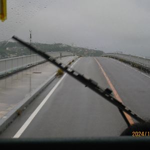 古利島の海のブルーと一本道が素晴らしいと聞いていただけに、大雨で残念でした。車中からもよく見えるように配慮してくださったのが救いでした。