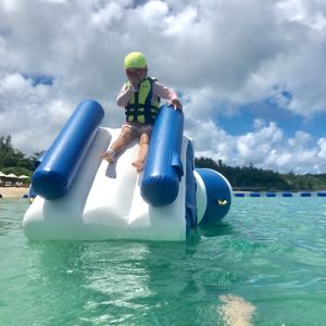First of all you need to walk a little path to genki village but the signage can be bigger we won't very sure at first. Japanese staff tried their best to explain some informations about dolphins to us the kids learned something (I hope!). I was alone with my daughter so it was very difficult to take picture and looking after my little girl same time. It is better to have third person to help you take pictures. The whole experience was good we were very close with the dolphins watching them doing different tricks. I think we got to pad them about three or four times. I think this is a must try experience with little kids at Okinawa something you will always remember in life!