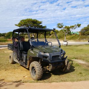 亜熱帯のジャングルや観光農園などの広大な地、オフロードのフィールドをバギーで走行しませんか?海だけでなく陸も楽しめる沖縄で今流行中の人気アクティビティ・バギー体験(ATV)はスリル満点!オフロードのコースを走行するのでアドベンチャー感覚で冒険気分を味わえます。間近で植物を鑑賞したり、大自然を走り回る爽快感はバギーならでは。女性にも高い人気がありカップルでの参加はもちろん小さなお子様と2人乗りでの参加が可能です。敷地内を走行するため運転免許不要。普通自動車免許がなくても参加可能です。事前に運転の仕方や走行レッスンを行うので安心。ガイドがご案内しつつも、でこぼこ道を自ら運転して突き進んでいくので、大人も子供も夢中になって楽しめます。おひとり様からOKのツアーもあるので、ぜき沖縄県に旅行された際にはオフロードコースを走るATVを体験してみてください。