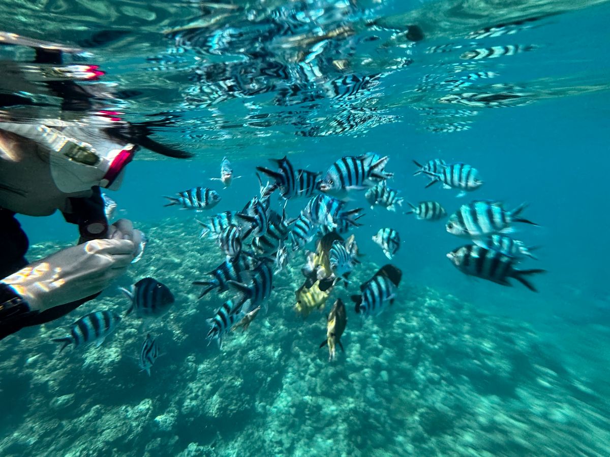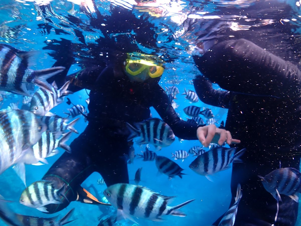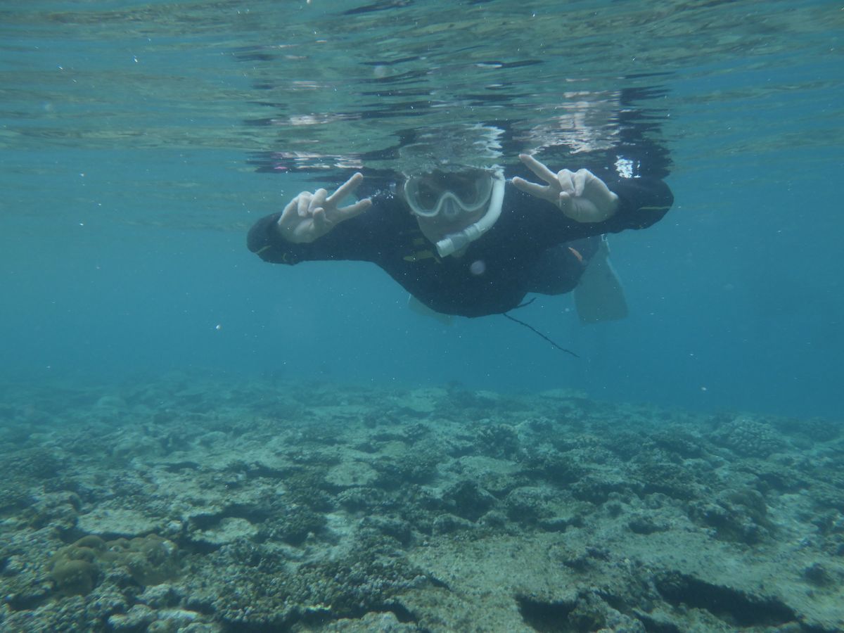シュノーケリングは初めてだったのでちょっと怖かったけど、担当のお兄さんが適切なアドバイスをしてくれるし、とても落ち着いた声で話してくれるので安心感があって、すぐに慣れて、ずっと海の中を楽しめました。