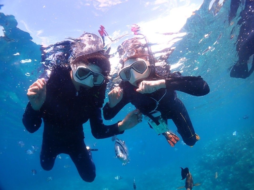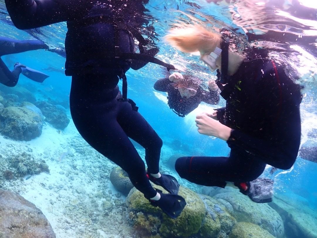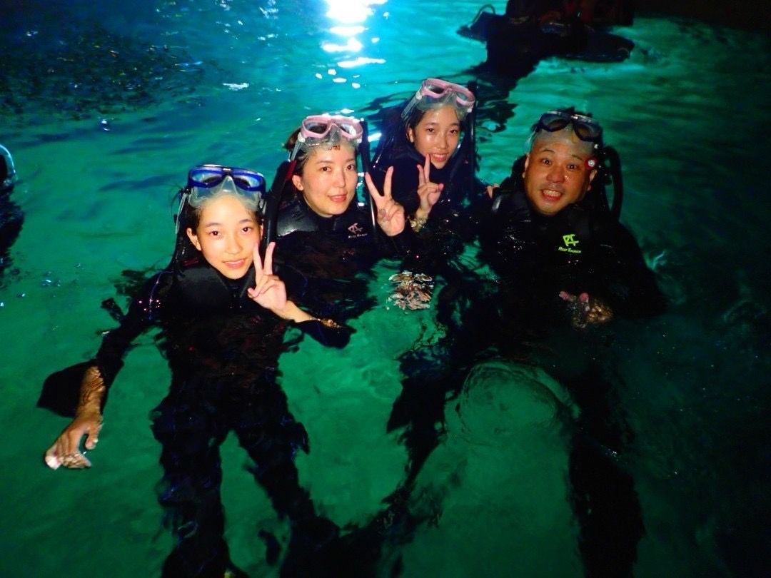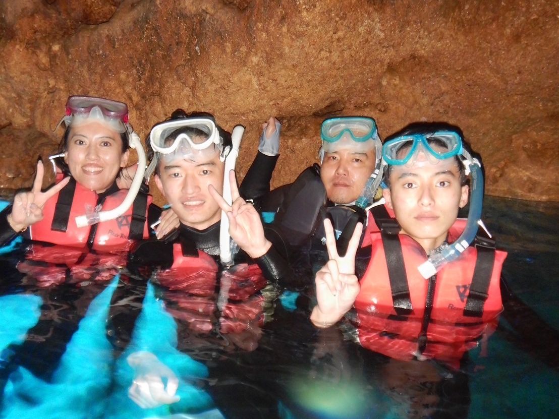 中学生娘二人と女子旅で参加しました。初心者にも優しく教えて頂き、楽しく体験できました。青い洞窟は圧巻の綺麗さで感動です。魚餌やりも沢山行えました。写真も多く撮ってもらい良い思い出になりました
