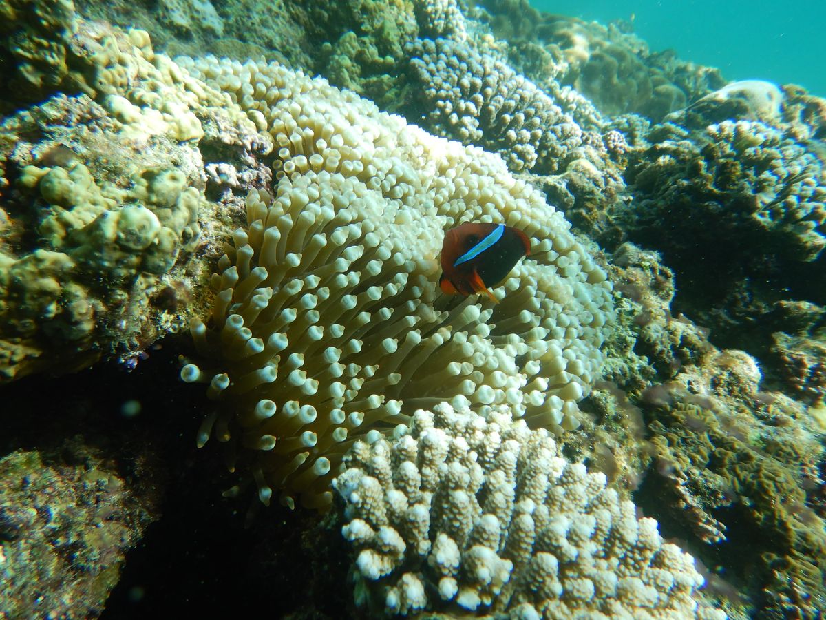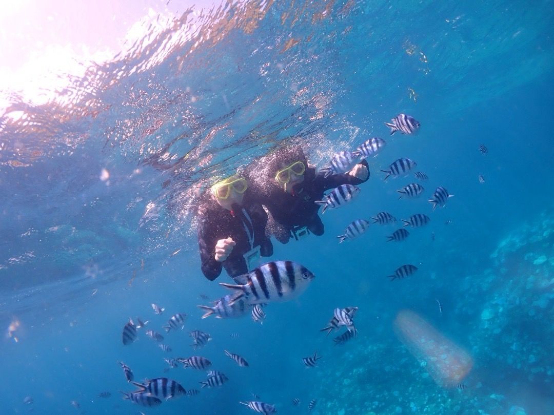 その後、珊瑚礁を海月と戯れながらシュノーケリングで美しい色のお魚さんたちにご挨拶♪