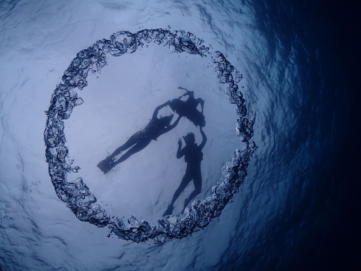 わざわざスタッフさんが深くに潜り、お口(だったかな)でリングを作って撮って下さいました。