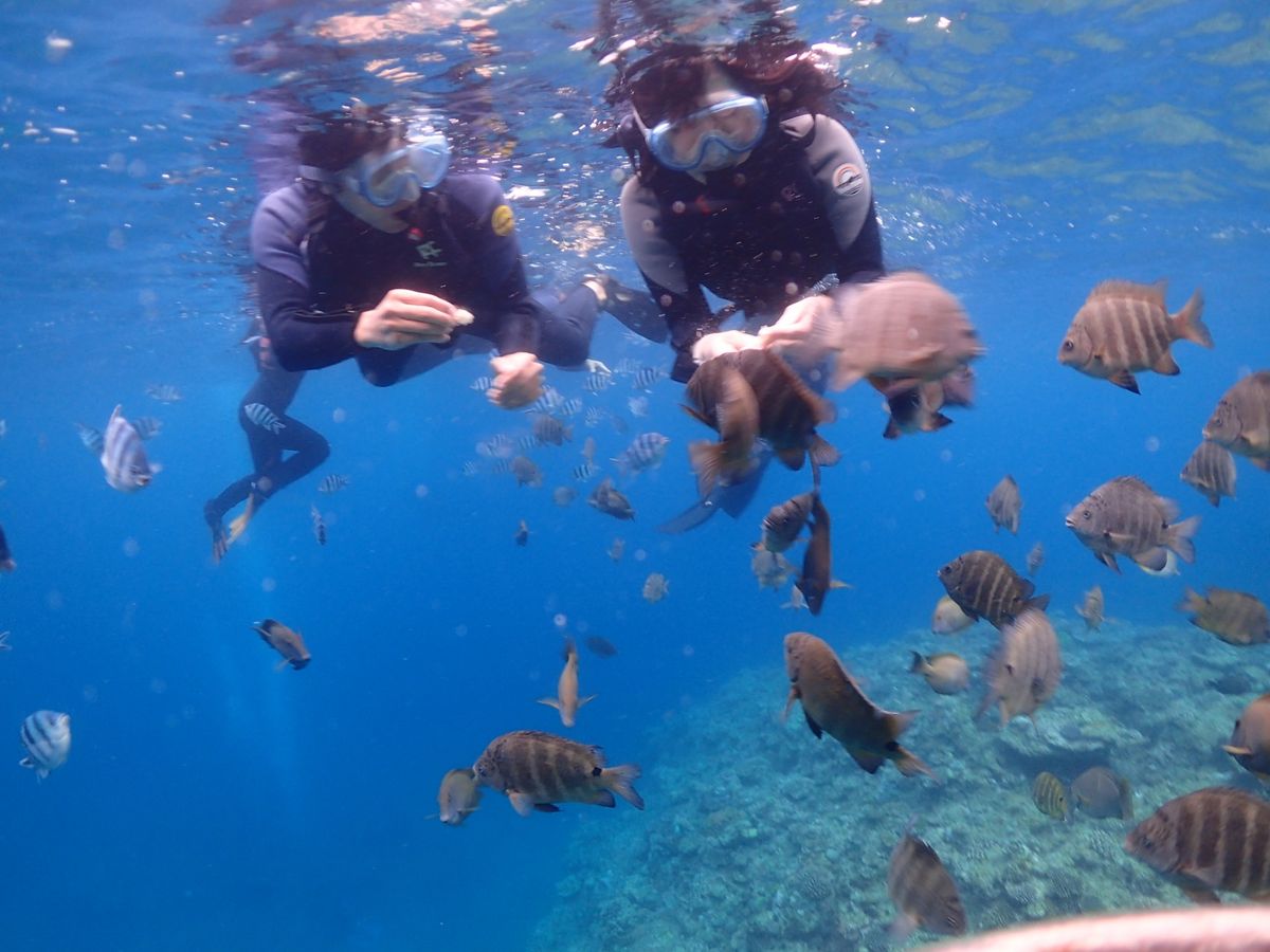 マリンアクティビティ自体したことがなく、元々海にも入らないこともありダイビングでは、呼吸法取得に時間がかかり浅いところまでしか潜れませんでしたが、周りのインストラクターの方が、優しくずっと付き添ってくださりとってもいい体験になりました!GoProでたくさん写真を撮っていただきデータ移行までとってもスムーズでした!
