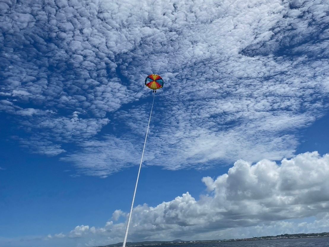 パラセーリングは上から見える景色がとても綺麗で自分の携帯を持って撮影も、ペアの人の携帯を預けて下からの撮影もしてくれたのでものすごく満足しています!最後に冷え冷えのさんぴん茶も美味しかったです。