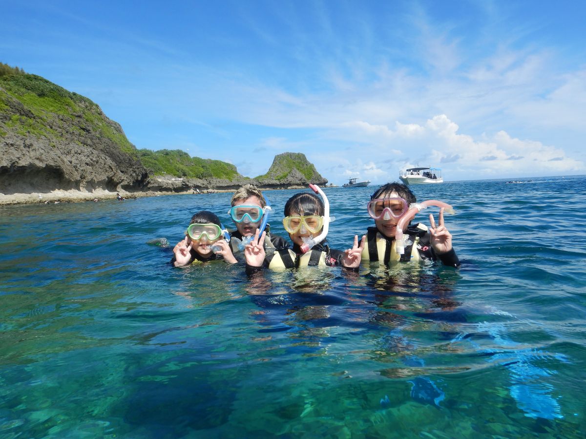 ウェットスーツについては、青の洞窟周辺の岩で怪我をしやすいのでシュノーケリングのお客様含め皆様に着て頂いております。