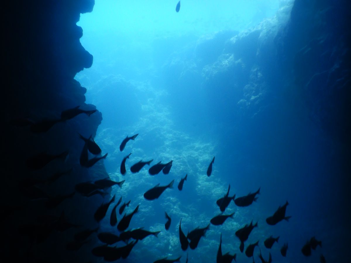 シーカヤックは海の綺麗なグラデーションと膨大な数の魚の上を進みつつ、切り立った崖や岩の間をすり抜けるのが本当に楽しかったし、青の洞窟までの距離も近過ぎず遠過ぎずちょうど良い距離。