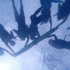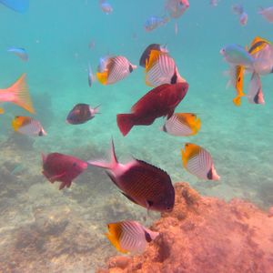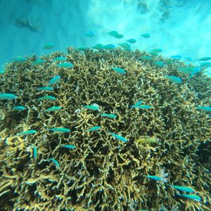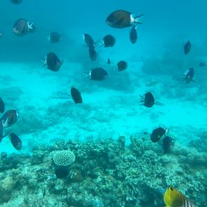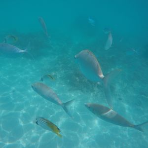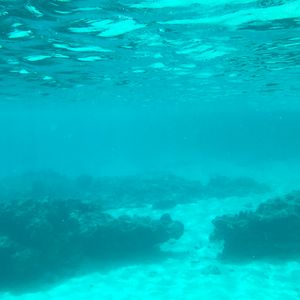 海はとても綺麗で色々なさかなをたくさん見ることができした。浅瀬でもじっとしているとさかなが近づいてくきて一緒に泳いでいるような感覚になりました。