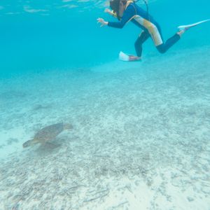 当日雨予報だったので、渡嘉敷島ツアーに参加しても楽しめるのか心配になり、電話で問い合わせをしました。とても親切に案内していただき、一か八かで参加。当日那覇から船で50分、到着したらまさかの晴れ間が見え、シュノーケルグッズをレンタルし、海に入ると開始5分で海ガメに遭遇しました!とかしくビーチは海ガメに遭遇しやすいビーチみたいで現地のスタッフさんにも丁寧にいそうな場所を教えて頂き3匹も見る事が出来ました!阿波連ビーチと悩みましたが、とかしくビーチは人も少なく、のんびりと過ごせました。本当に行って良かったです!一緒に行ったメンバーも、また行きたいねと話してます。次回沖縄に行った際はまた参加させてもらいたいと思います。ありがとうございました。