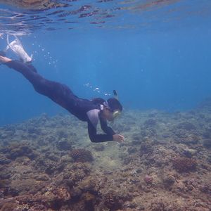 前日に青の洞窟でダイビングを体験。あまりの綺麗さに感動し、翌日はシュノーケリングで参加しました。ガイドさんの言う通り「早起きは三文の徳」、最高の景色とお魚さんたちを見ることが出来ました。また、知識と経験豊富なガイドだったので体験自体を楽しめました。今度沖縄に来た時も是非このツアーに参加したいと思っています。ありがとうございました。