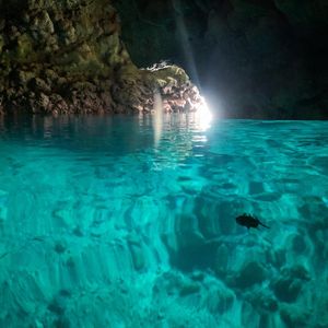 水面には少しまだ軽石がある状態でしたが、行った日はティファニーブルー的な青の洞窟で綺麗でしたっ!!