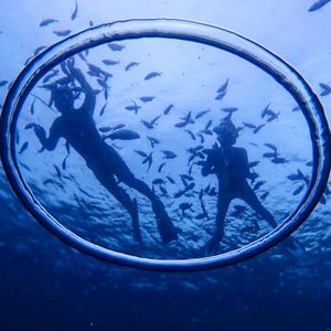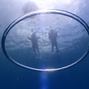 海底から海面に向けて、またバブルリング越しに撮ってもらった写真、素敵すぎて、壁紙にします。ほんと最高!
