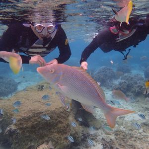 海は大変綺麗で水族館や図鑑でしかみたことのなかった綺麗な水の生き物達と泳ぎ、みることができ、えさをあげるとよってきてくれて感動しました!