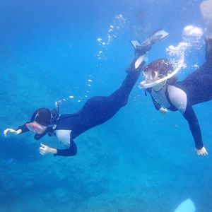 姉と2人で宮古島の帰りに参加しました。あいにく台風の影響で洞窟には行けませんでしたがたくさんの魚を見る事ができて満足しています。インストラクターの歩君との会話も楽しくあっという間に時間が過ぎていました。ウェットスーツのお店も教えて頂きゲットして帰りました。有難うございました。
