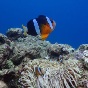 海にはクマノミなどの魚がたくさんいて、シュノーケリングを楽しめます。
