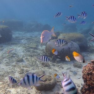 初めてのシュノーケリングで不安でしたが、大坂さんにとっても明るく優しく教えてもらえて安心してシュノーケリングできました♪♪海の中ではお魚のエサをあげてたくさんのお魚と写真も撮っていただき、その画像をLINEに送ってもらえました(^^)シュノーケリングした後はシャワーも付いていて、シャンプーもコンディショナーもあり快適でした☆大満足のシュノーケリングでした(*^_^*)ありがとうございました!!