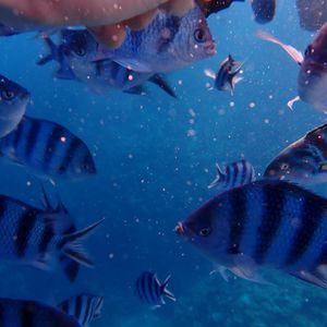 青の洞窟ではたくさんのカラフルなお魚達を見たりエサをあげたり、とても楽しかったです