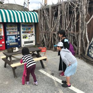 那覇空港から約一時間、早めに行ってお店の隣のパンケーキ屋さんがお休みだったから近所の食べ物屋さんに行きました。ファミレスもありました。