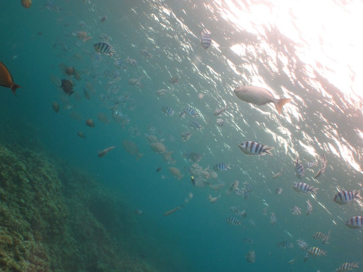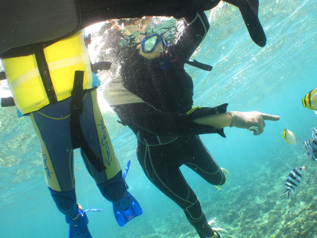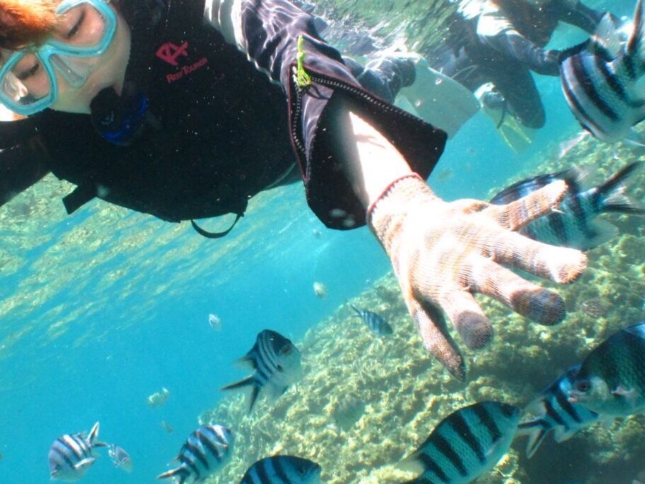また、ライフジャケットをつけているのでとても泳ぎにくく、魚を近くで見たかったのですが、常に体が浮いた状態なので潜ることもできませんでした。