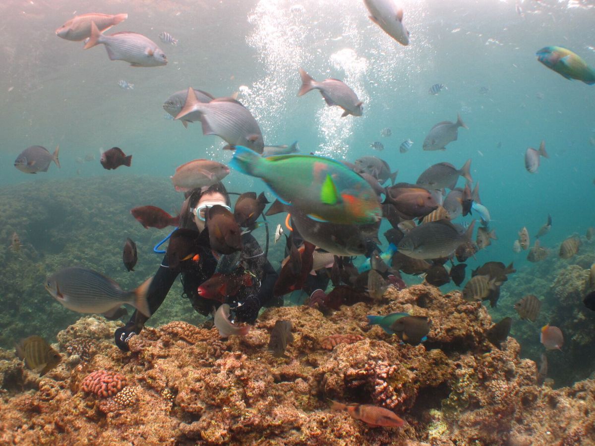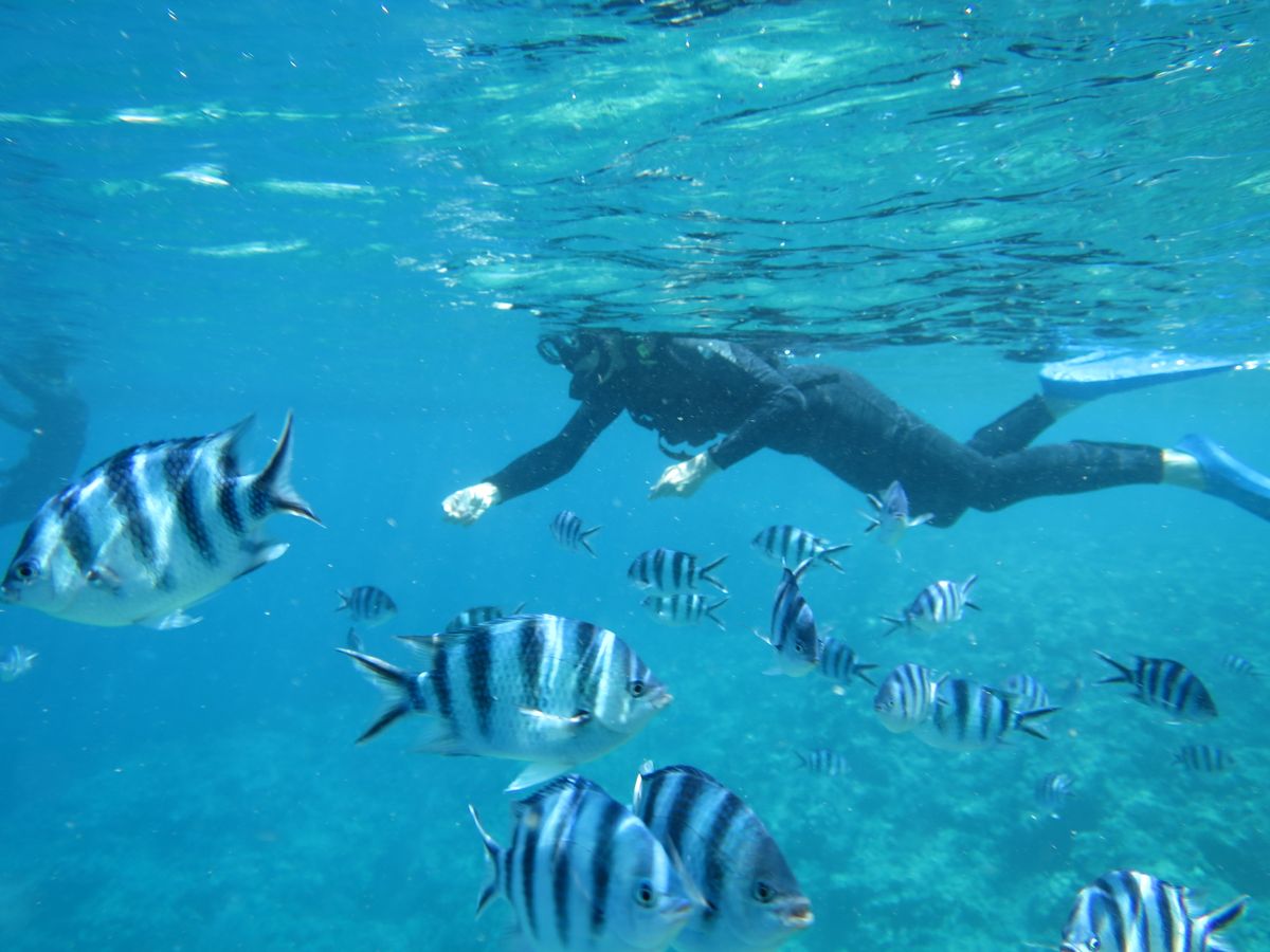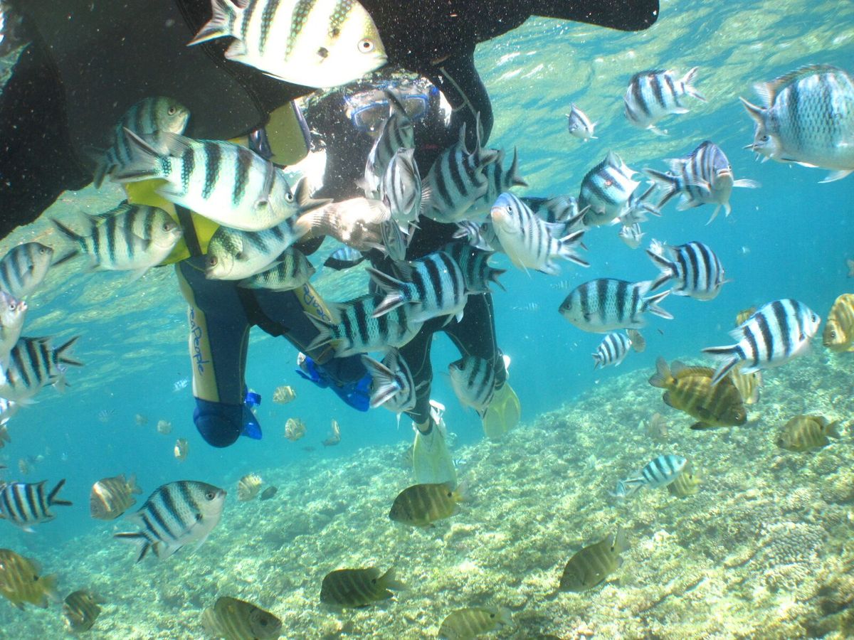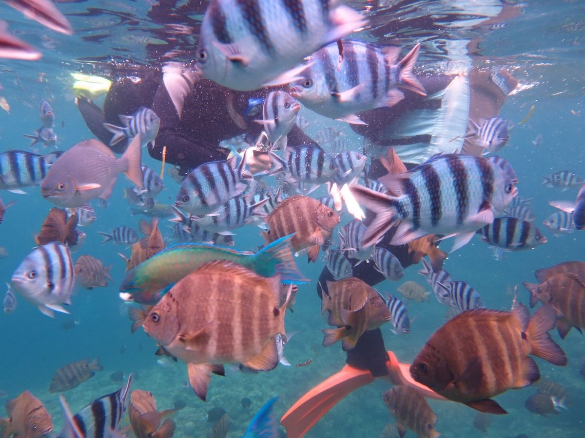 その後船に戻るまでの間で魚にえさをあげて終わりでした。