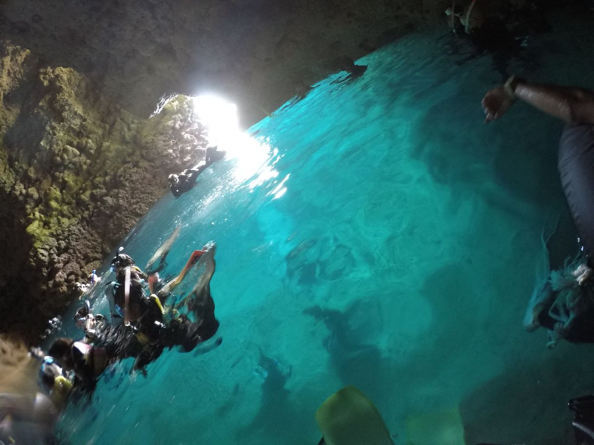 洞窟まで泳いで行き、一番青く見えるスポットまで並びました。ほんとにきれいな青色で感動しました。水中カメラを借りた方はこの場所で写真を撮ってもらえます。