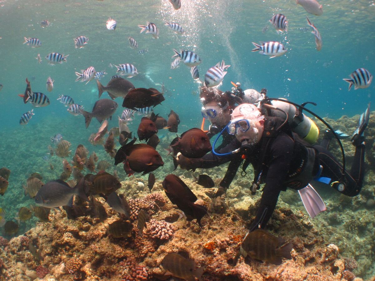 What I liked aside from the cave were two things: first, they give you "esa" (bait) and you just hold your hand out and the fish come to you! The next thing was that everyone's guide has this really nice underwater camera and they take photos of you the whole time, like 100. You can download them on to your phone and they also give you a CD at the end for free. Beautiful photos, great for couples.