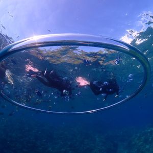 ç¬ã§ãããç¹ã«èªç±ã«æ³³ãããŠãããããšã¯ãªããæµ·åºãæã§éãããã«åããŠããŸããããã£ãããã¬ãã€ããŠããã®ã§ããå°ãèªç±ã«æ³³ãããã£ãã§ãããŸããGoProã¯ã€ã³ã¹ãã©ã¯ã¿ãŒã®æ¹ãæã£ãŠãããåçãåç»ãèªç±ã«ã¯åããŸããã§ãããå ããŠæŽè¡£å®€ã«ãæ¡å
