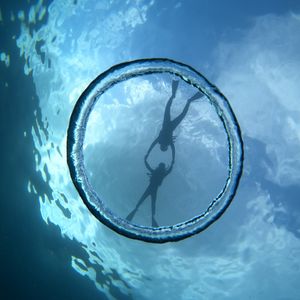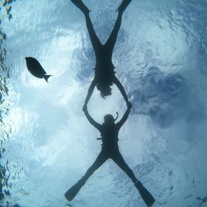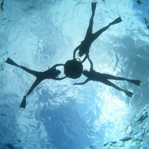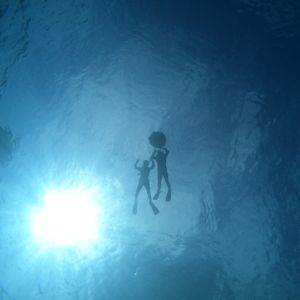 水中の中は空から降りそそぐ太陽の光でカーテンが作り出され