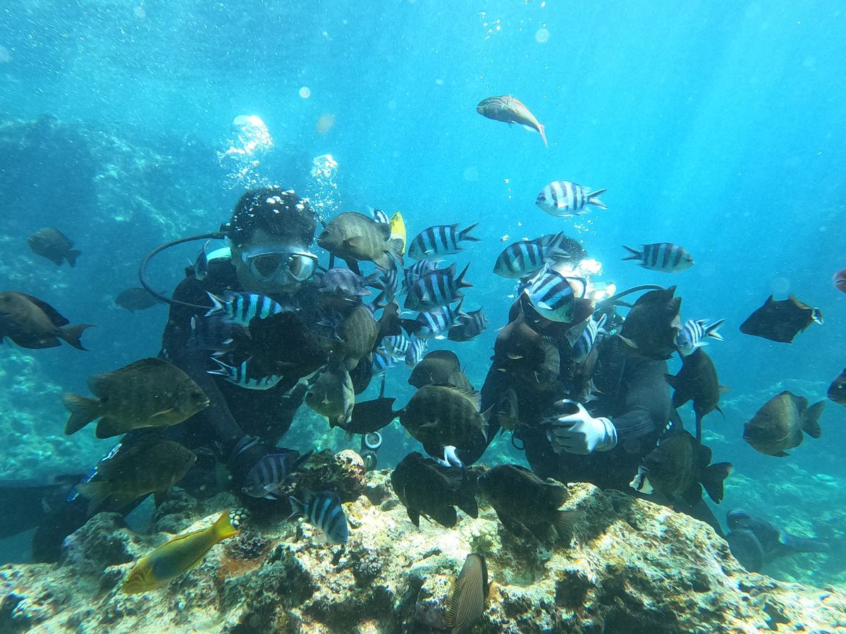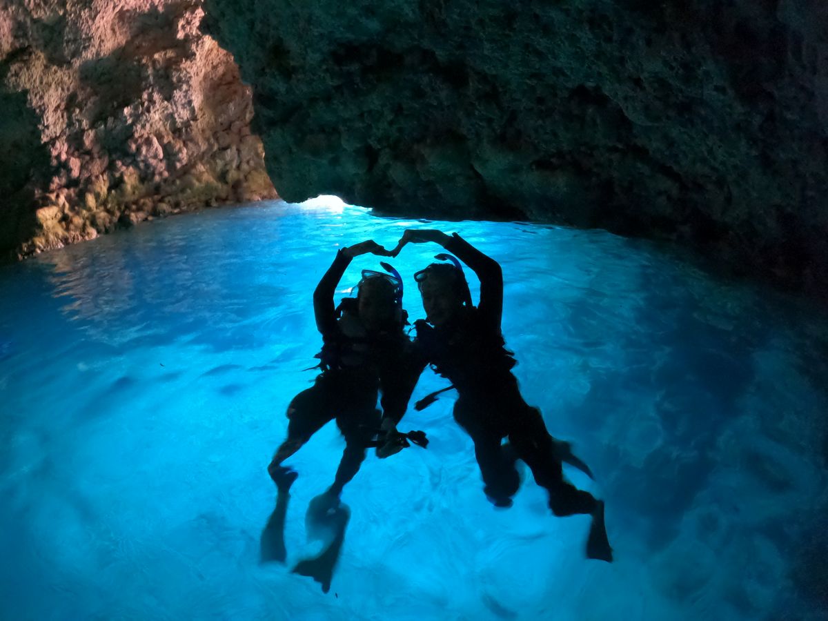 まず、台風の影響で元々予約していた日と違う日に変更したら洞窟にいけるかもしれません。と教えて頂き予約の日程を変更してもらいました。利用者の気持ちを考え、真摯に対応して頂ける姿に感謝しておりました。初めてのダイビングで最初は楽しみより不安がいっぱいだったんですが、担当してくれた方のお陰で最高の思い出になりました!陸でダイビングのやり方を丁寧に教えて頂き、実際に潜っても私たちの事を気にしながら進んでいって頂き、安心して体を預けることができました。本当に担当の方のお陰で楽しい旅行の思い出を作ることが出来ました。今回は緊張で中々リラックスできなかったので次回は楽しみながら出来たらいいなぁと思います!また来た時には、必ず同じ店舗でしたい!ととても思える体験でした。本当にありがとうございました!