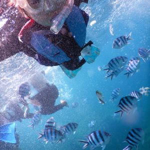 水中での写真撮影もセットで付いてくるのですが、良い思い出になるように構図や表情、髪型まで配慮してくれて良い写真が残るように導いてくれたり(笑)魚もエサや笛?のようなもので寄せてくれるので綺麗な魚に取り囲まれた最高のシチュエーションを用意してくれます。