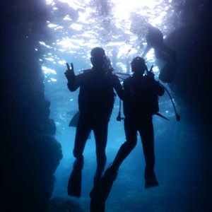 20代の男女ふたりで参加しました。強風の影響でボートエントリーのダイビングになりましたが、とっても素晴らしい景色が見られました。ガイドさんに案内され洞窟内に入ると暗く、「どこが青いんだろう」と訝しみながら背後を振り返ってみると、そこには神秘的な光景が広がっていました。青の洞窟は、想像以上に青が映えるスポットでした。その後の餌付けタイムでは、カラフルな熱帯魚たちが自分たちの周りに集まって来て、目の前がプチ水族館のようでした。ガイドさんが撮った写真はさすがプロ!バッチリでした。