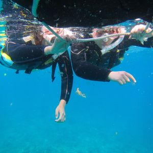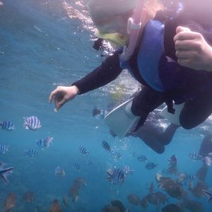 Voucher に記載のある集合場所が間違っていましたので、改善をお願いしたいです。道具の使用方法も丁寧にしてくださり、安心して海に入れました。曇っていたので少し寒く感じましたが、餌付けをすると魚が寄ってきて楽しかったです。次はダイビングに挑戦したいと思います。