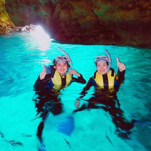 11月中旬に夫婦で参加しました。昨年も同じ時期に沖縄へ行き、青の洞窟を訪れました。その時に見た青に感動し、また11月ということで観光客も比較的少なく、のんびりと楽しむことができたので、今回も同じ時期での参加を決めました。昨年はダイビングで参加したため、洞窟の上から見る青を楽しむことができなかったので、今回はシュノーケルで予約をしました!