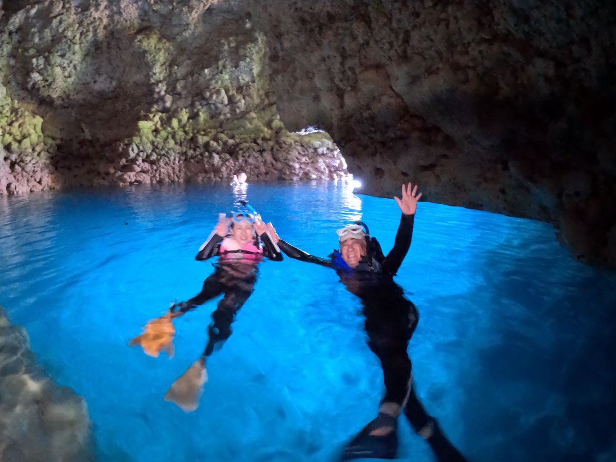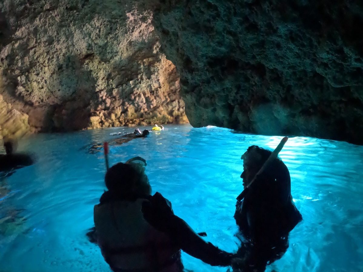 ポイント地点から泳ぎながら青の洞窟に行くので距離が少しあるのと、波が高かったので体力が必要ですが、その間に魚が見れたり泳げるので楽しかったです!また青の洞窟はとてもきれいで神秘的でした。。いつもはとてもたくさんの観光客の方がいるとのことでしたが、今回は人数が少なくゆっくり全体を見れてとてもよかったです!担当の方も気さくな方で楽しかった:)少し疲れるので帰りお菓子を持っていって正解と思いました!